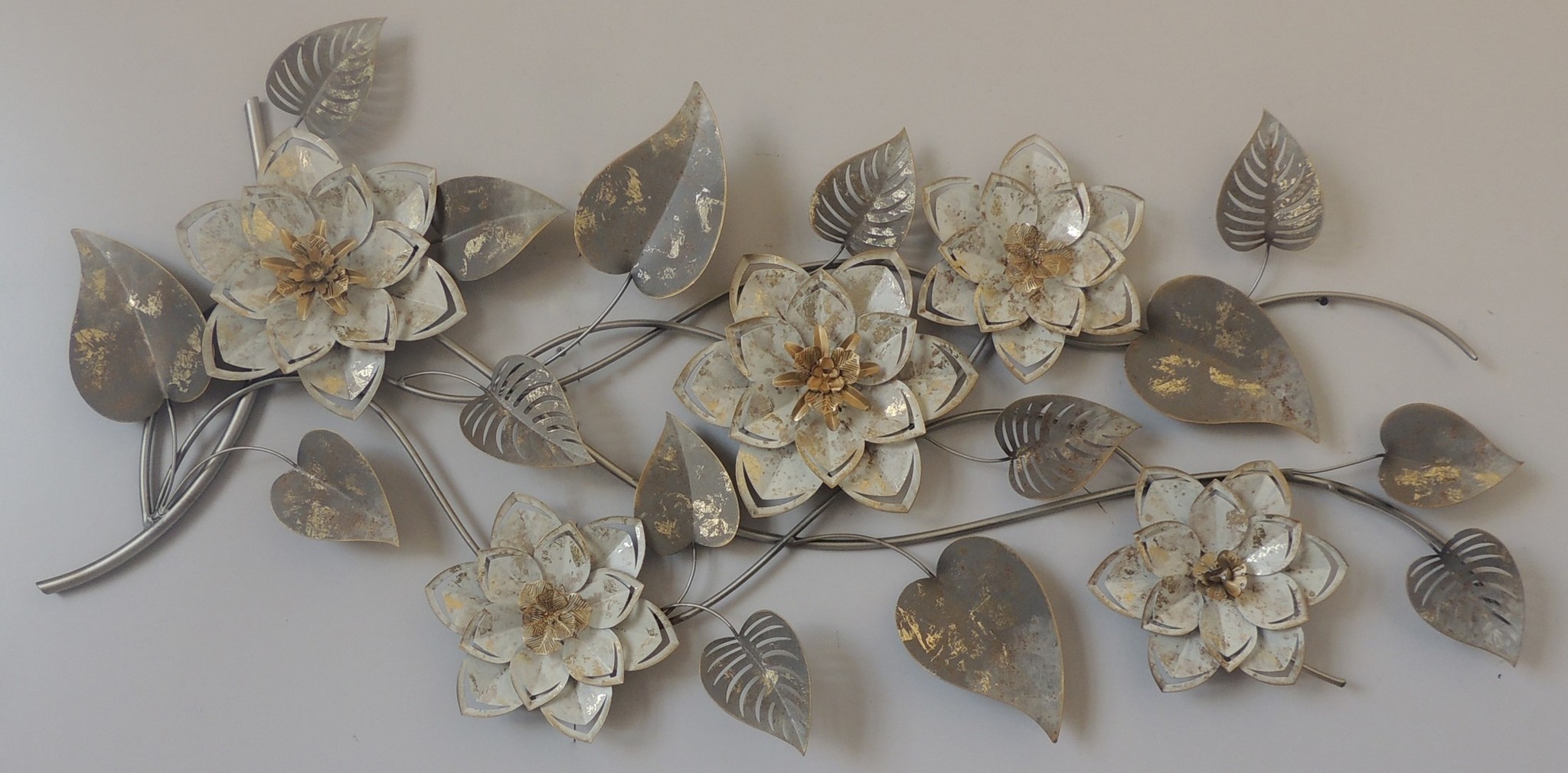 Deze 3-dimensionale metalen muurdecoratie zal een echte eye cacher bij u thuis zijn. Dit kan zowel in een klassiek als in een modern interieur worden opgehangen. Handgeschilderd met gepolijste delen waardoor het geheel een aparte lichtspeling krijgt.