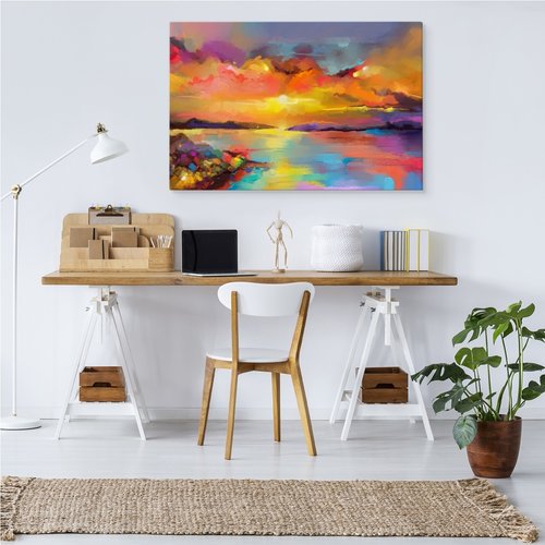 Schilderij - Abstracte Zonsondergang, Multikleur, Premium Print
