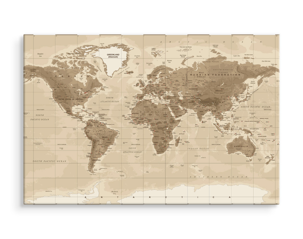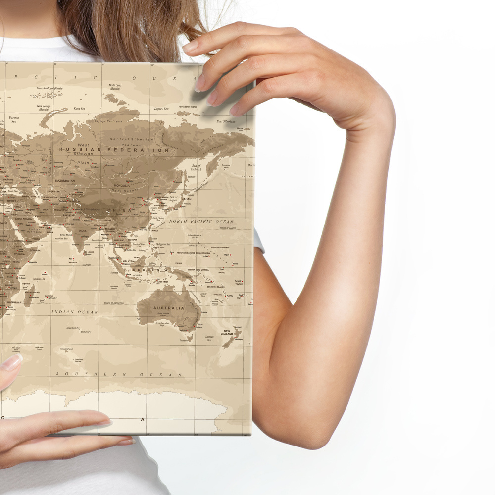 Dit Schilderij - Beige bruine Wereldkaart , Wanddecoratie , Premium print , wordt speciaal voor u op bestelling geprint, daarna goed geïnspecteerd en vervolgens stevig verpakt. Levenslang genieten van dit prachtige schilderij.
