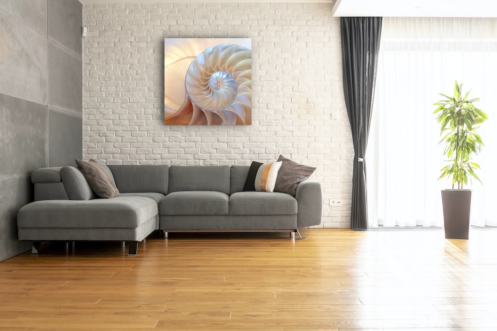 Schilderij - Binnenkant schelp , 3 Maten, Premium print - 80x80cm