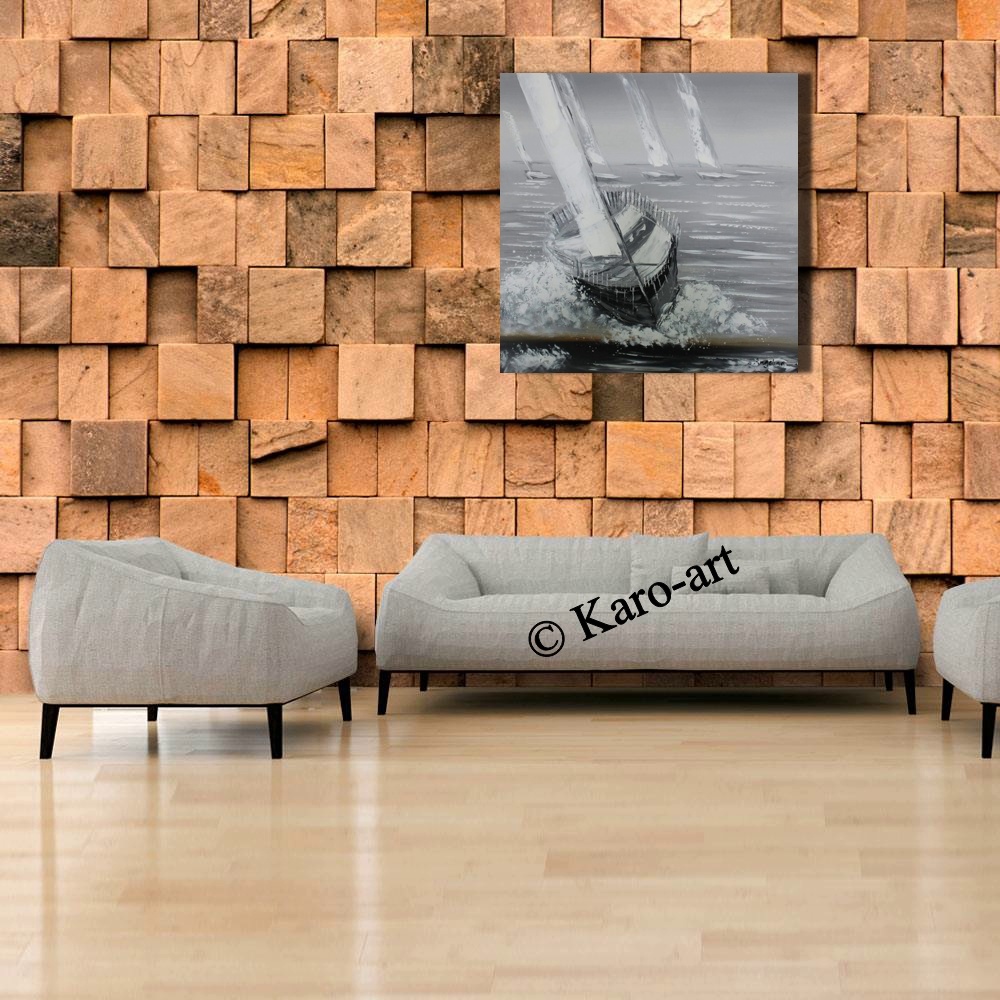 Schilderij - Handgeschilderd - Zeilboten race 2 100x100cm