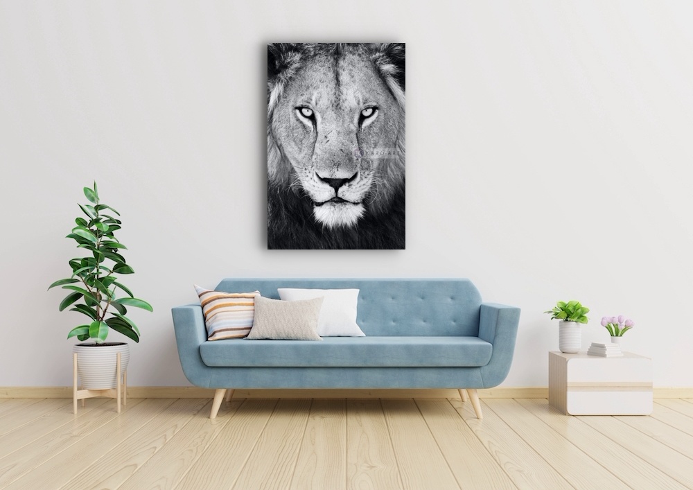 Schilderij - Leeuw ,Zwart wit , 3 maten , Premium Print
