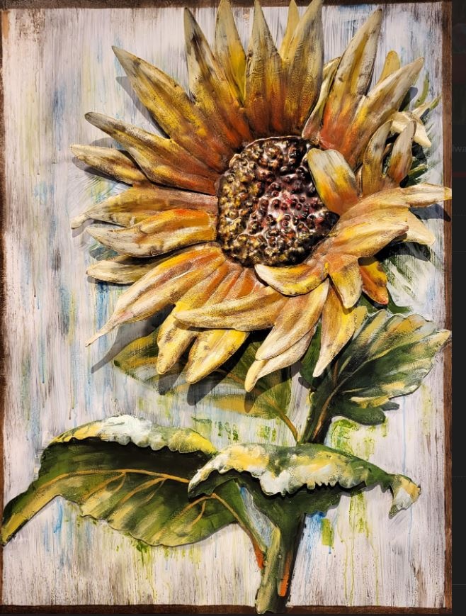 Schilderij - Metaalschilderij - Zonnebloem, 60x80cm, 3D schilderij