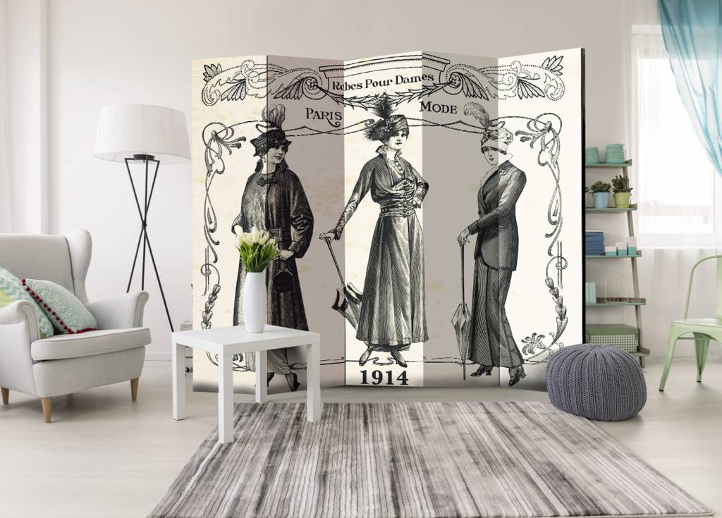 Vouwscherm / Kamerscherm - Jurk 1914, mode 225x172cm , gemonteerd geleverd, dubbelzijdig geprint